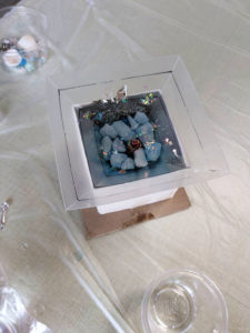 たくさん用意してもらったパーツからお好みのものを選んでオルゴナイトの中に入れます。